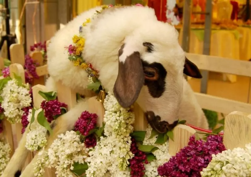 Агнето и хлябът се освещават в църква. След службата се реди обща трапеза.