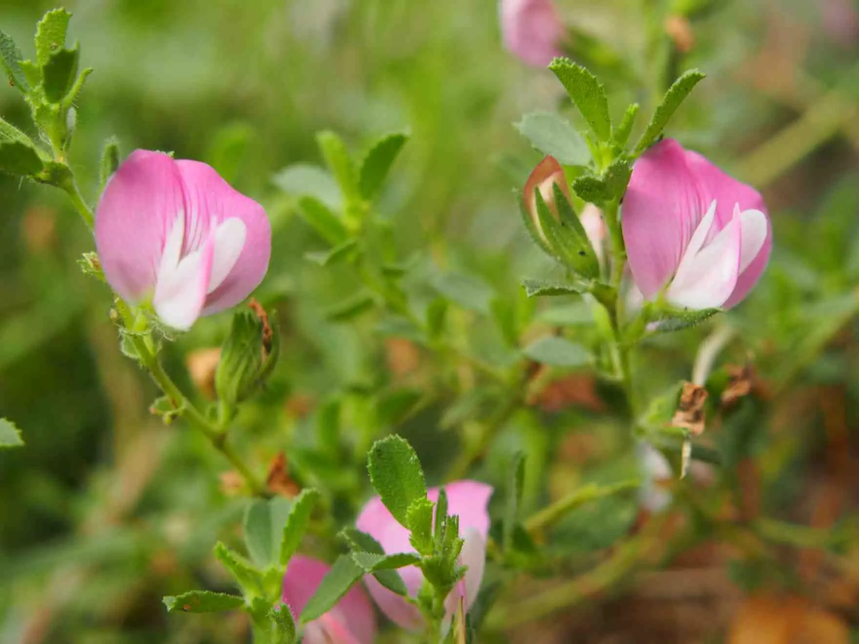 Стъблото е високо до 70 см, с голям брой бодли. Долните и средните листа са триделни, а горните — прости, снабдени с прилистници. Дяловете са овални, по края остро назъбени. Цветовете са единични или по два в пазвите на листата и образуват гъсти класовидни съцветия. Венчето е розово, неправилно, два пъти по-дълго от чашката. Плодът е боб с 2—4 семена.