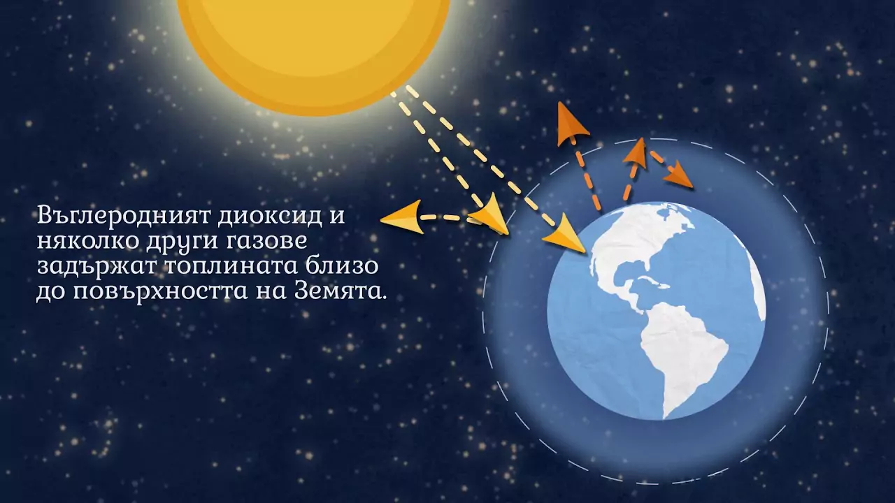 Парниковите газове, и въглеродният диоксид в това число, задържат топлината на повърхността на Земята и нейната средна температура в долните слоеве на атмосферата се повишава. За последните 50 години средната годишна температура в някои райони на планетата се е повишила с 1 градус по Целзий. Това незначително увеличение е твърде осезателно в глобални мащаби.