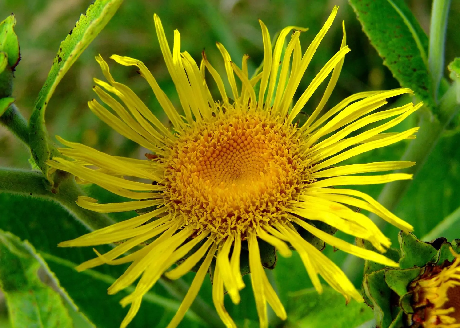 В коренът на растението се откриват – инулин, полимер на фруктозата, хеленин и стеароптен, които могат да бъдат извлечени под формата на бели иглести кристали, неразтворими във вода, но лесно разтворими в алкохол.