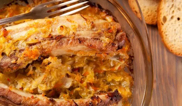 Докато зелето се готви, разпределете ребърцата и ги поръсте с малко черен пипер, кимион и сол. Наредете ги в леко намаслена тава. Запичат се във фурната за около 30 минути на 200 градуса.