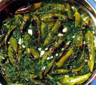 Омесете добре с чушлетата, наръсете с копър или магданоз и залейте с олиото. Дръжте в хладилника.