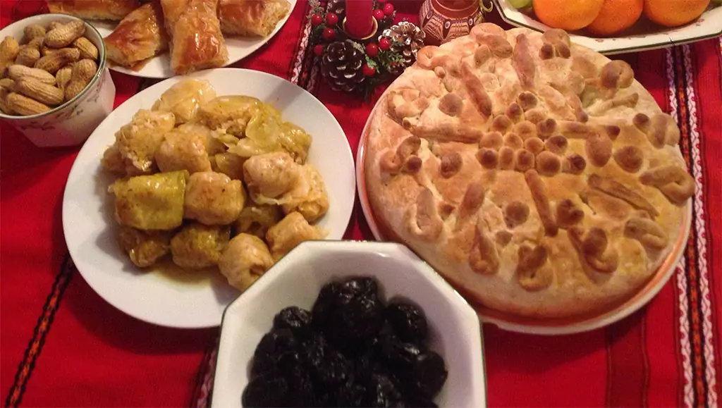 На трапезата преобладават най-вече сладките храни: сладкиши, пастички, петифури, сладка баница с пълнеж според сезона, баклава, локумки, печени ябълки.