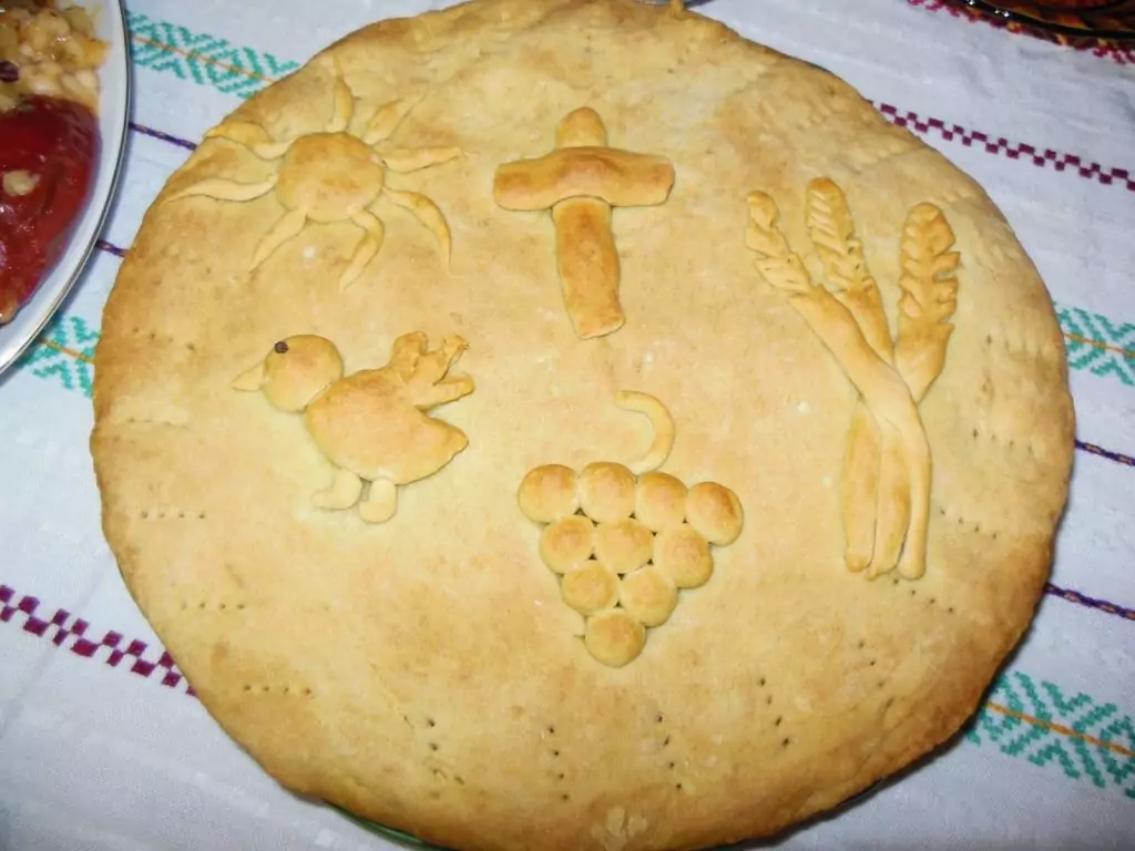 От пластичната украса на хляба се дават на отделни членове на семейството онези части, които символизират техния труд – на овчаря се дава кошарата, на орача – ралото.
