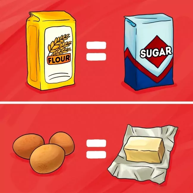 -Тайната на перфектното тесто за сладкиши е проста: теглото на брашното трябва да е равно на теглото на захарта, а теглото на яйцата трябва да е равно на теглото на маслото.