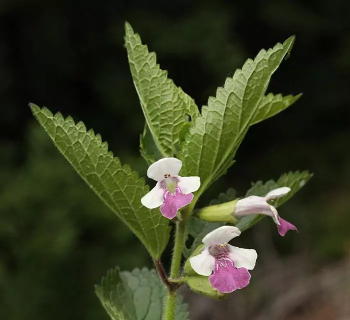 Стъблата са изправени, високи 20 – 70 см, четириръбести с твърди власинки. Листата са срещуположни, на дръжки, продълговати до яйцевидни, дълги 6 – 15 см, едро назъбени, в основата сърцевидни до закръглени.