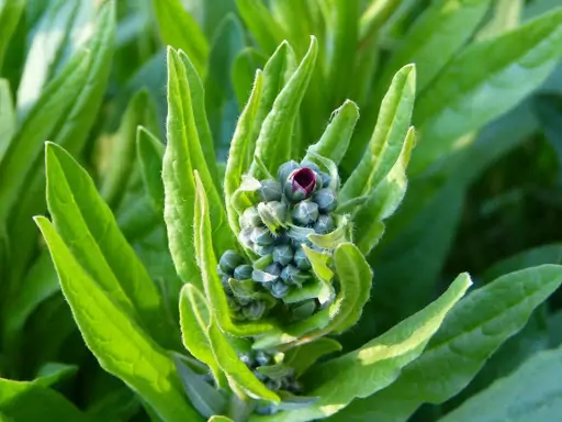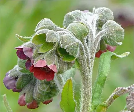 Билката се нарича и лекарствена наумка, мишинек, наметка, кучешки език, черна трева, чернокорен, яблъкиня.