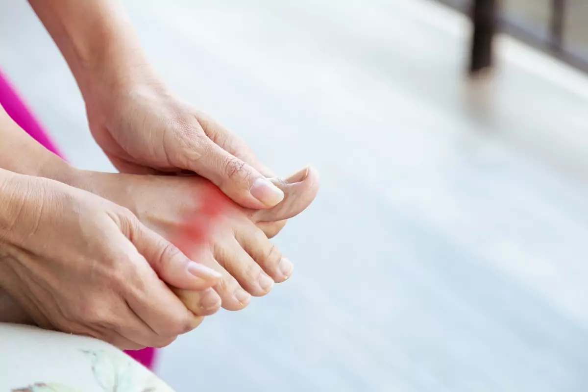 Най-често се случва с големият пръст на крака, но е възможно да се прояви и при глезените, лактите или коленете. При много болни се наблюдава и висока температура.