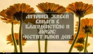 януари 14, 2021 Антоновден Пожелание за Антоновден 8 за 11 февруари 2026 Антония, живей винаги в благоденствие и любов! Честит имен ден!