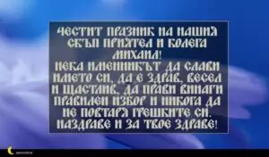 ноември 6, 2020 Архангеловден Пожелание за Архангеловден 15 за 31 януари 2026 От сърце и с пълни гърди искам да извикам: ей Митак, честит имен ден, брат! И да стресна целия град.