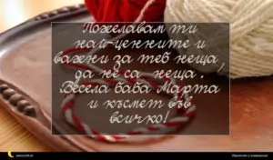 февруари 7, 2020 Баба Марта Пожелание за Баба Марта 12 за 11 февруари 2026 Пожелавам ти най-ценните и важни за теб неща, да не са „неща“. Весела баба Марта и късмет във всичко!