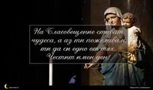 март 22, 2020 Благовещение Пожелание за Благовещение 16 На Благовещение стават чудеса, а аз ти пожелавам ти да си едно от тях. Честит имен ден!