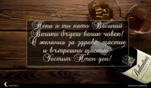 януари 1, 2021 Васильовден Пожелание за Васильовден 1 за 13 февруари 2026 Нека и ти като Василий Велики бъдеш велик човек! С желания за здраве, щастие и вътрешно щастие! Честит Имен ден!