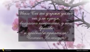 април 1, 2020 Великден Пожелание за Великден 2 за 17 февруари 2026 Нека Бог те държи далеч от зли езици, внезапно нещастие, умни врагове и дребнави приятели! Честит Великден!