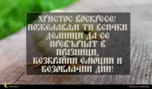април 1, 2020 Великден Пожелание за Великден 20 за 17 февруари 2026 Христос Воскресе! Пожелавам ти всички делници да се превърнат в празници, безкрайни емоции и безоблачни дни!