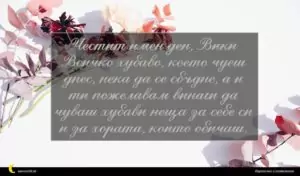Всичко хубаво, което чуеш днес, нека да се сбъдне, а и ти пожелавам винаги да чуваш хубави неща за себе си и за хората, които обичаш.