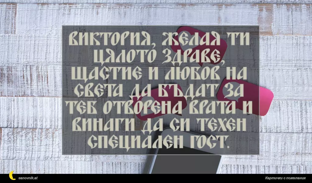 Виктория, желая ти цялото здраве, щастие и любов на света да бъдат за теб отворена врата и винаги да си техен специален гост.
