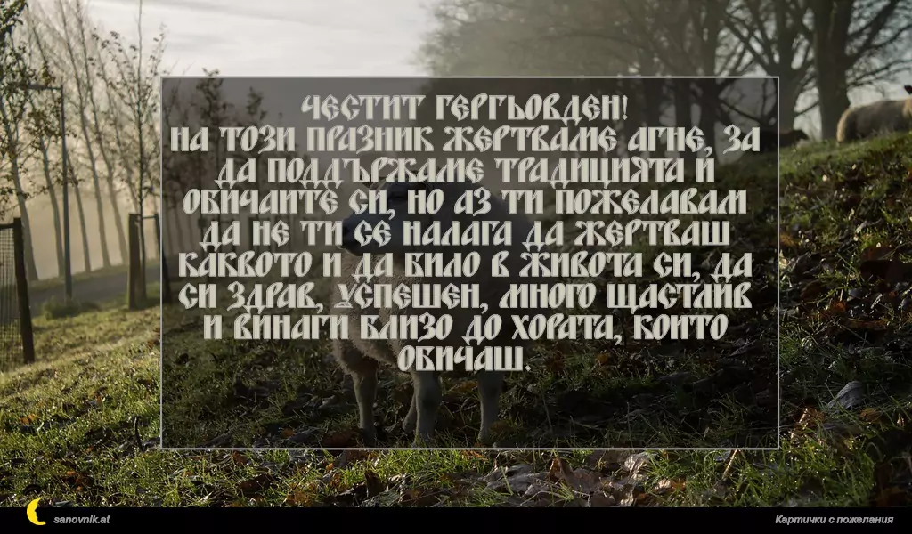 На този празник жертваме агне, за да поддържаме традицията и обичаите си, но аз ти пожелавам да не ти се налага да жертваш каквото и да било в живота си, да си здрав, успешен, много щастлив и винаги близо до хората, които обичаш.