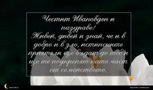 януари 1, 2021 Ивановден Пожелание за Ивановден 16 Честит Ивановден и наздраве! Живей, дивей и знай, че и в добро и в зло, истинските приятели ще бъдат до теб и ще те подкрепят като част от семейството.