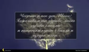 януари 1, 2021 Ивановден Пожелание за Ивановден 19 Честит имен ден, Иване! Пожелавам ти здраве, много хубави емоции и истински купон с весели и щедри жени.