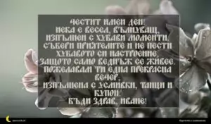 януари 1, 2021 Ивановден Пожелание за Ивановден 34 Честит имен ден! Нека е весел, вълнуващ, изпълнен с хубави моменти. Събери приятелите и не пести хубавото си настроение, защото само веднъж се живее. Пожелавам ти една прекрасна вечер, изпълнена с усмивки, танци и купон. Бъди здрав, Иване!