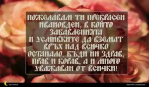 януари 1, 2021 Ивановден Пожелание за Ивановден 44 Пожелавам ти прекрасен Ивановден, в който забавленията и усмивките да вземат връх над всичко останало. Бъди ни здрав, прав и корав, а и много уважаван от всички!