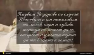 януари 1, 2021 Ивановден Пожелание за Ивановден 5 Казвам Наздраве по случай Ивановден и ти пожелавам от любов, пари и хубави жени да не можеш да се отървеш и цялата година да ти бъде на късмет!