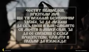 януари 1, 2021 Ивановден Пожелание за Ивановден 55 Честит Ивановден, приятелю мой. Ще ти пожелай безгранично здраве, за да можеш да сбъднеш и най-смелите си мечти и много сили, за да се справиш с всяко препятствие, колкото и голямо да изглежда!