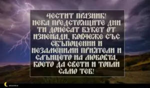 юли 5, 2020 Илинден Пожелание за Илинден 8 за 15 февруари 2026 Честит празник! Нека предстоящите дни ти донесат букет от изненади, ковчеже със скъпоценни и незаменими приятели и слънцето на любовта, което да свети и топли само теб!