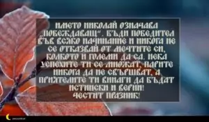 Името Николай означава „побеждаващ“. Бъди победител във всяко начинание и никога не се отказвай от мечтите си, колкото и големи да са. Нека успехите ти се множат, парите никога да не свършват, а приятелите ти винаги да бъдат истински и верни!