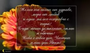 ноември 29, 2020 Никулден Пожелание за Никулден 9 за 11 февруари 2026 Желая ти океан от здраве, море от любов и едно малко островче с пари! Бъди много усмихнат, силен и обичан! Това е твоя ден, Честит имен ден Ники!