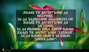 октомври 13, 2020 Петковден Пожелание за Петковден 58 за 1 февруари 2026 Желая ти достатъчно да получиш, за да задоволиш желанията си! Желая ти достатъчно да загубиш, за да оцениш това, което имаш! Желая ти достатъчно „Здравей„, за да имаш сили и за някое „Довиждане„!