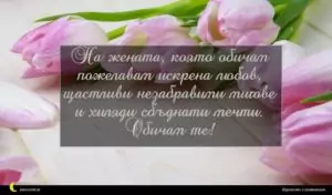април 4, 2020 Рожден ден на жена Пожелание за Рожден ден на жена 9 за 11 февруари 2026 На жената, която обичам пожелавам искрена любов, щастливи незабравими мигове и хиляди сбъднати мечти. Обичам те!