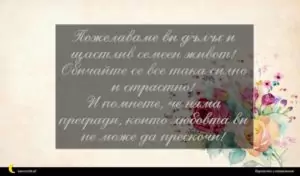 март 9, 2020 Сватба Пожелание за Сватба 12 за 11 февруари 2026 Пожелаваме ви дълъг и щастлив семеен живот! Обичайте се все така силно и страстно! И помнете, че няма прегради, които любовта ви не може да прескочи!
