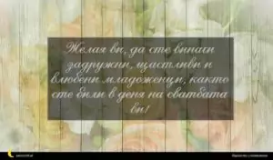 март 9, 2020 Сватба Пожелание за Сватба 36 за 11 февруари 2026 Желая ви, да сте винаги задружни, щастливи и влюбени младоженци, както сте били в деня на сватбата ви!