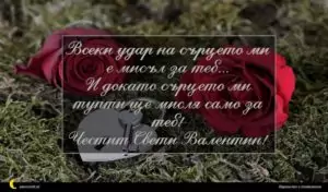 февруари 6, 2020 Св. Валентин Пожелание за свети Валентин 39 за 15 февруари 2026 Всеки удар на сърцето ми е мисъл за теб… И докато сърцето ми тупти ще мисля само за теб! Честит Свети Валентин!