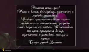 Събери приятелите и не пести хубавото си настроение, защото само веднъж се живее. Пожелавам ти една прекрасна вечер, изпълнена с усмивки, танци и купон.
