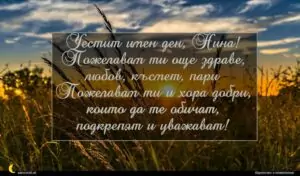 януари 14, 2021 св. Нина Пожелание за св. Нина 11 за 22 януари 2026 Честит имен ден, Нина! Пожелавам ти още здраве, любов, късмет, пари Пожелавам ти и хора добри, които да те обичат, подкрепят и уважават!