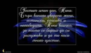 януари 14, 2021 св. Нина Пожелание за св. Нина 4 за 22 януари 2026 Честит имен ден, Нина. Бъди винаги уверена жена, истински, красива и непобедима. Нека всичко, за което се бориш да си заслужава и да ти носи много щастие.
