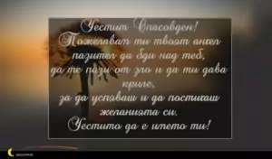 май 21, 2020 Спасовден Пожелание за Спасовден 6 Честит Спасовден! Пожелавам ти твоят ангел пазител да бди над теб, да те пази от зло и да ти дава криле, за да успяваш и да постигаш желанията си. Честито да е името ти!