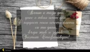 декември 6, 2020 Стефановден Пожелание за Стефановден 16 за 15 февруари 2026 Велик е този ден, днес е твоя имен ден. С гордост носи името което са ти дали, бъди жив и здрав. Честит Стефановден!