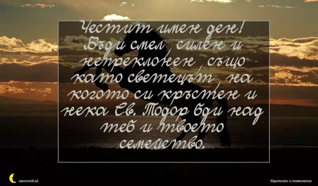 Бъди смел, силен и непреклонен, също като светецът, на когото си кръстен и нека Св. Тодор бди над теб и твоето семейство.