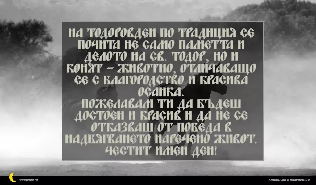 На Тодоровден по традиция се почита не само паметта и делото на Св. Тодор, но и конят – животно, отличаващо се с благородство и красива осанка.