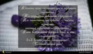 март 8, 2020 Цветница Пожелание за Цветница 7 за 12 февруари 2026 Твоето име не може да е избрано случайно. То определя твоята същност. Ти наистина си цвете – чиста, изящна, носеща красота и хармония. Нека вселената бъде с теб и ти съдейства във всяко ново начинание! Честит имен ден!