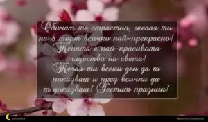 март 2, 2020 8 март Пожелание за 8 март 23 за 12 февруари 2026 Обичам те страстно, желая ти на 8 март всичко най-прекрасно! Жената е най-красивото същество на света! Желая ти всеки ден да го показваш и пред всички да го доказваш! Честит празник!