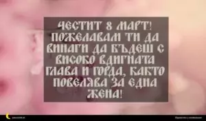 март 2, 2020 8 март Пожелание за 8 март 27 за 12 февруари 2026 Честит 8 март! Пожелавам ти да винаги да бъдеш с високо вдигната глава и горда, както повелява за една жена!