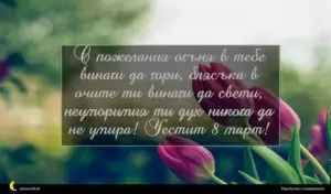 март 2, 2020 8 март Пожелание за 8 март 29 за 12 февруари 2026 С пожелания огъня в тебе винаги да гори, блясъка в очите ти винаги да свети, неуморимия ти дух никога да не умира! Честит 8 март!