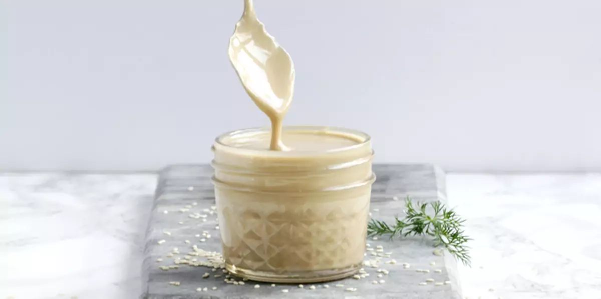Продукти: сусамов тахан, сол, хладка вода, лимонов сок, чесън, смлян кимион